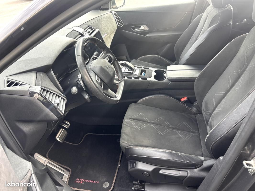 DS 7 Crossback Hybride E-Tense 300 EAT8 4×4 Performance Line tout-terrain, gris fonce, 11 cv, 5 portes, kilométrage : 76 494 km, première mise en circulation le 14/01/2022, première main.
